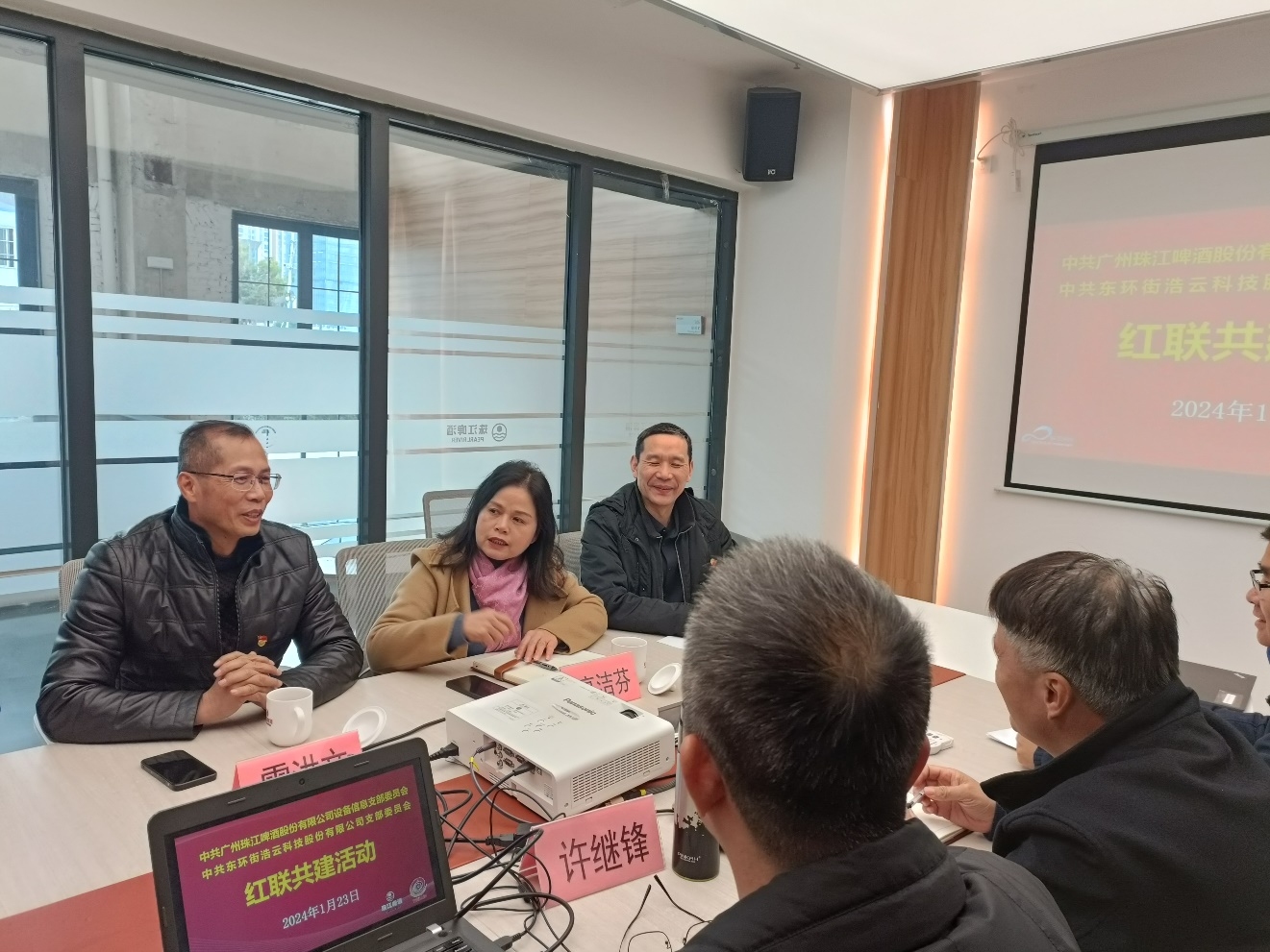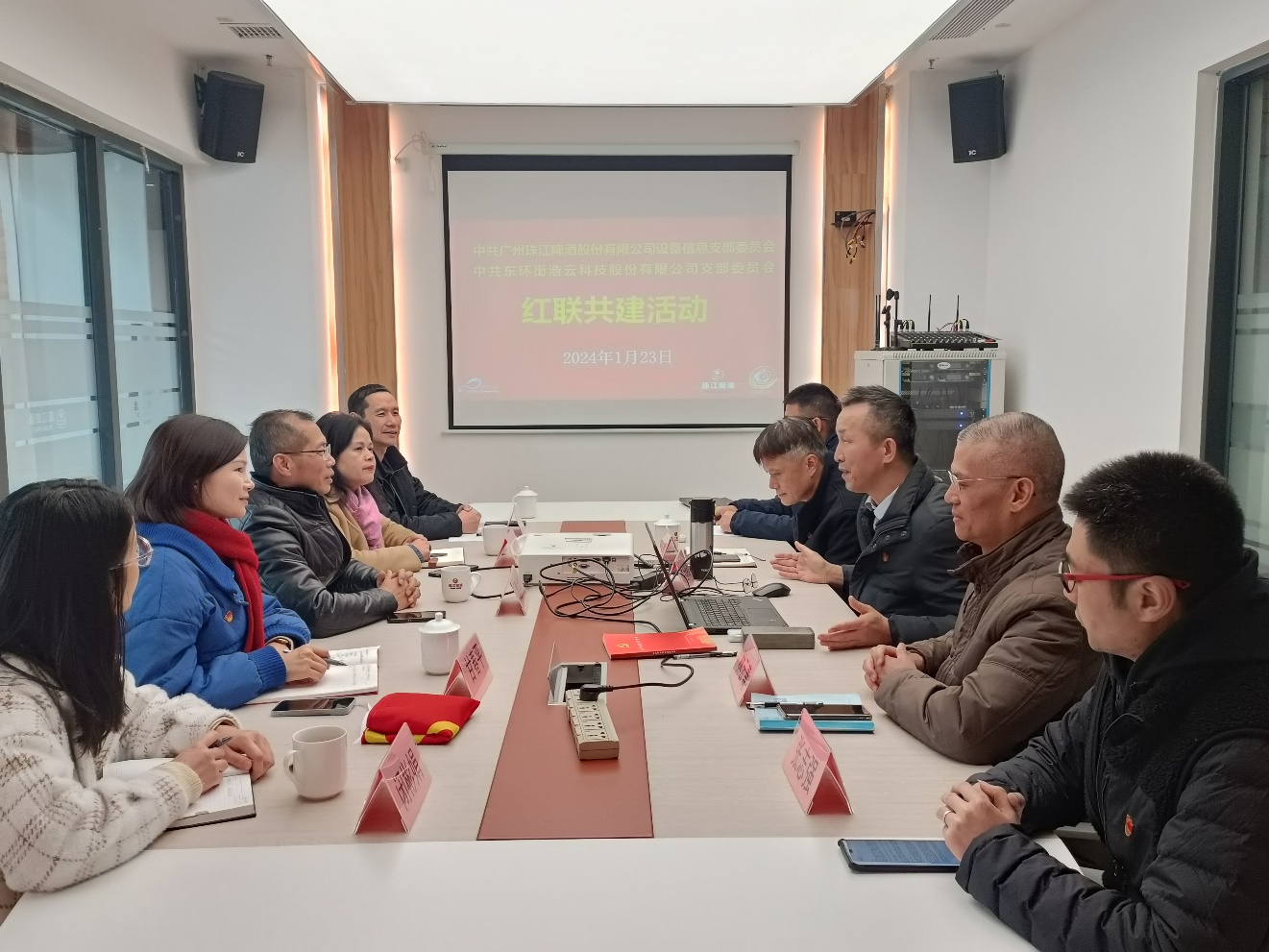 活動首先由珠江啤酒股份有限公司設備信息黨支部書記許繼鋒領學習近平總書記關于網(wǎng)絡安全和信息化工作的重要指示精神,浩云科技支部書記雷洪文總經(jīng)理和何健華顧問分別領學廣州市網(wǎng)絡安全和信息化工作會議精神并解讀重點內(nèi)容。雙方交流黨建工作及設備信息黨支部“智創(chuàng)先鋒”黨建品牌創(chuàng)建和深化方案推進經(jīng)驗。珠啤股份信息部部長林云青向浩云科技一行介紹珠江啤酒在信息化、數(shù)字賦能助推企業(yè)高質量發(fā)展方面的經(jīng)驗。雙方還就貫徹落實廣州市網(wǎng)絡安全和信息化工作會議精神,“黨建+”數(shù)字賦能鍛造高質量發(fā)展“紅引擎”、筑好網(wǎng)絡安全“防火墻”深入交流探討,為筑牢網(wǎng)絡安全防線,在數(shù)字產(chǎn)業(yè)化、產(chǎn)業(yè)數(shù)字化方面進一步交流合作打下基礎。